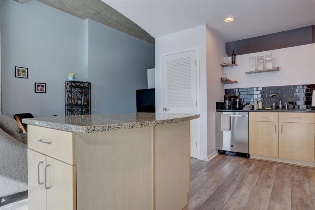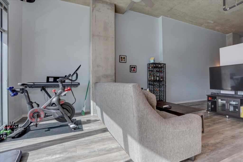 The unit comes with one dedicated parking space in a secure underground garage. Residents enjoy excellent building amenities, including an 8th-floor pool, Riverfront Park Athletic Club membership, bike storage, and more.
